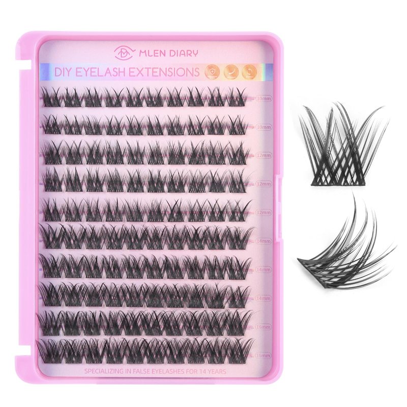 MLEN DIARY Lash Cluster DIY Eyelash Extensions 100 Clusters Lashes 10-16mm D Curl Mega Wispy Volume Individual Lashes Eyelash Clusters Extensions DIY at Home