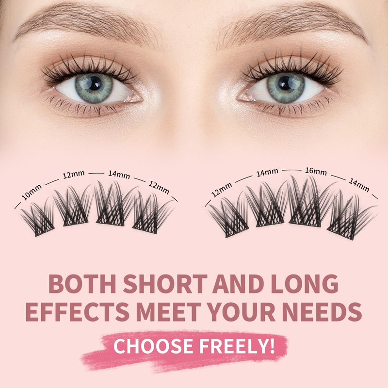- Lash Clusters DIY at Home: 100 clusters in one tray, with 10-12-14-16mm various lengths. You can DIY cluster lashes at home instead of beauty salon, save money and time for makeup, provide more convenient. Just one box of eyelashes to create the perfect lash effect for every occasion.
