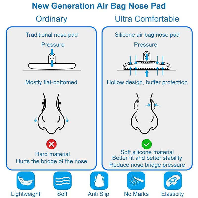 - Special Design: These Nose Pads have an ergonomic D-shape and are created in a special airbag design. This design allows the nose pads to Deflate and Inflate itself when being worn. The air pocket in between the front and back of the Eyeglasses will prevent the Nose Bridge from being squeezed, creating a sturdy and comfortable fit that does not slip.