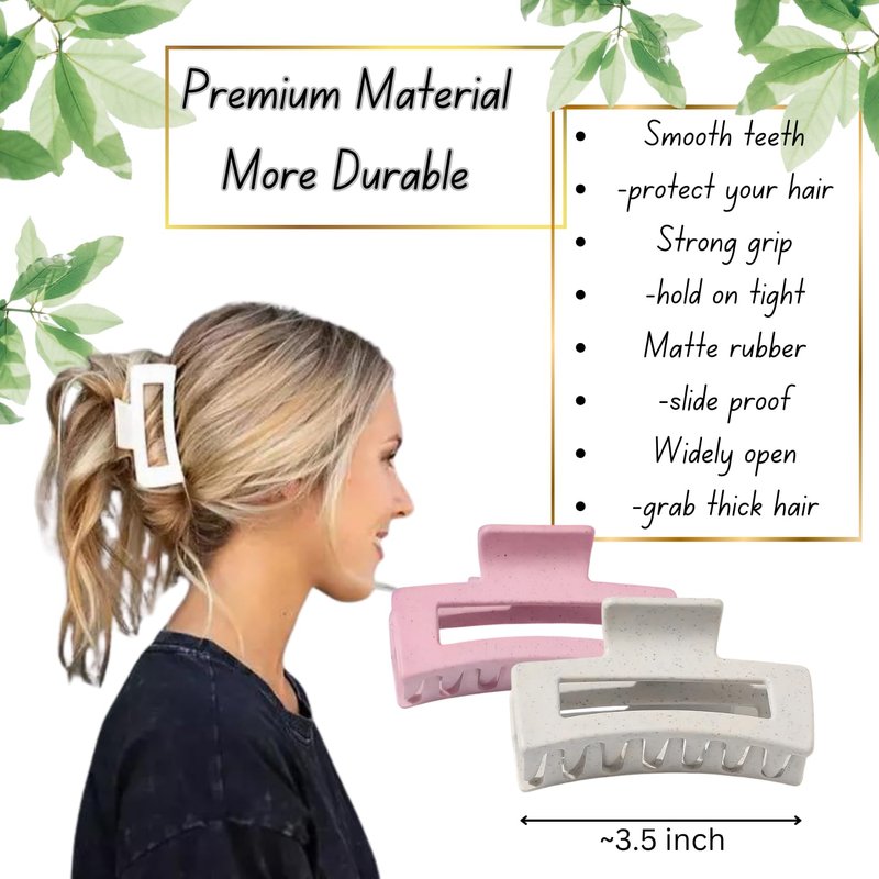 - These claw hair clips are made of high-quality plastic materials and metal spring. The length of this hair clip is about 3.3 inch. It can comfortably hold all day and will not scratch your scalp. You will get 2 hair clips in pink and creamy white colors. Perfect for all hair types, thick or normal and thin hair. Keep hair tidy during facial cleaning, shower(bathroom), sports (outdoor), cooking (kitchen), dating and working (office).