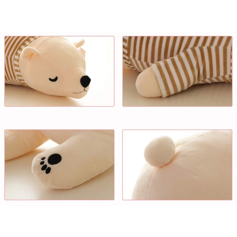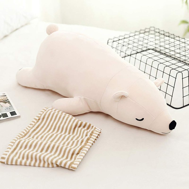 - SIZE - White sleeping POLAR BEAR size 13.8 x 7.1 x 4.7 in inches | 35 x 18 x 12 in centimeters, net weighs 0.35 lbs / 0.16 kgs. Our large stuffed POLAR BEAR toy is soft, cozy, comfortable and a perfect companion to help kids with their bedtime. If your kid has trouble getting to bed, a big hug and cuddle from our plush POLAR BEAR toy are all it takes for your child to visit dreamland. A great stuffed toy for your children and best gift for POLAR BEAR lovers or plushie lovers.