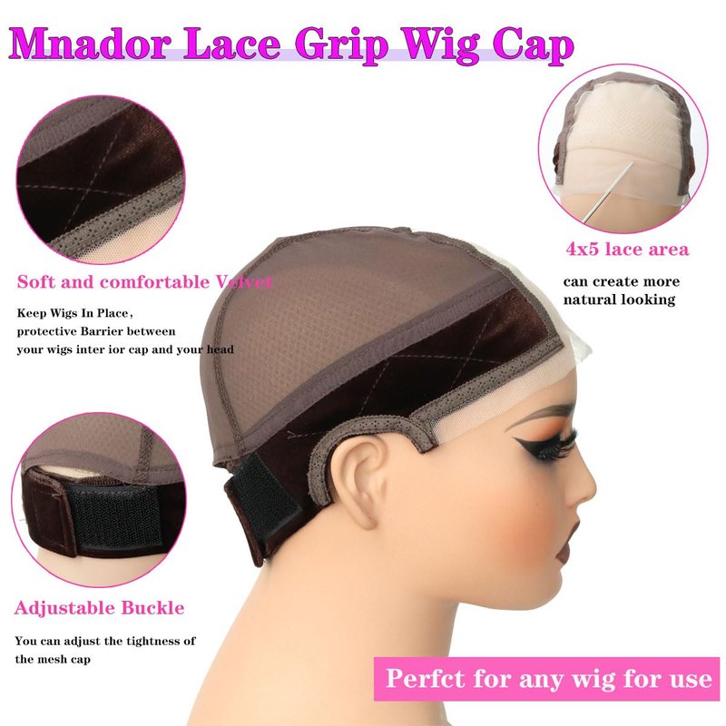 Mnador Lace Grip Wig Cap 4x5 Transparent Lace Wig Caps , Wig Grip Band For Keeping Wigs In Place , Adjustable Wig Cap with Grip Headband Non Slip Cap for Women