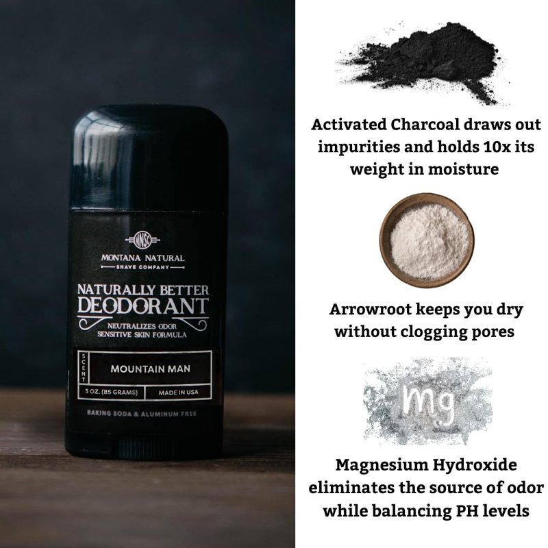 MNSC Mountain Man Deodorant - Magnesium & Activated Charcoal, Sensitive Skin Formula - Aluminum-Free, Baking Soda-Free, All-Natural, Plant-Derived - Made in USA