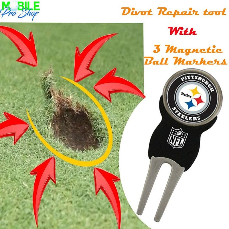 Mobile Pro Shop Divot Repair Tool with 3 Double-Sided Removable Magnetic Golf Ball Markers