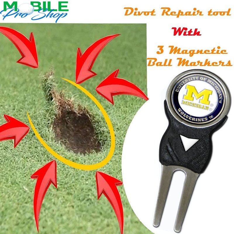 Mobile Pro Shop Divot Repair Tool with 3 Double-Sided Removable Magnetic Golf Ball Markers Lightweight & Highly Durable-Best Divot Fixer