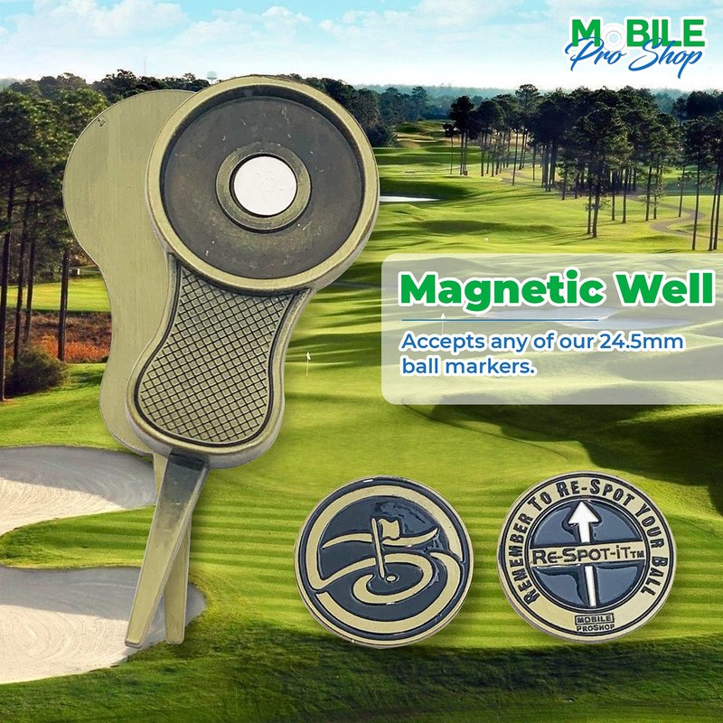 - Magnetic Markers _ Our built-in magnetic ball markers are not so easy to fell off while playing due to strong magentic grip. Any 24.5 mm magnetic marker can be attached our divot tool.