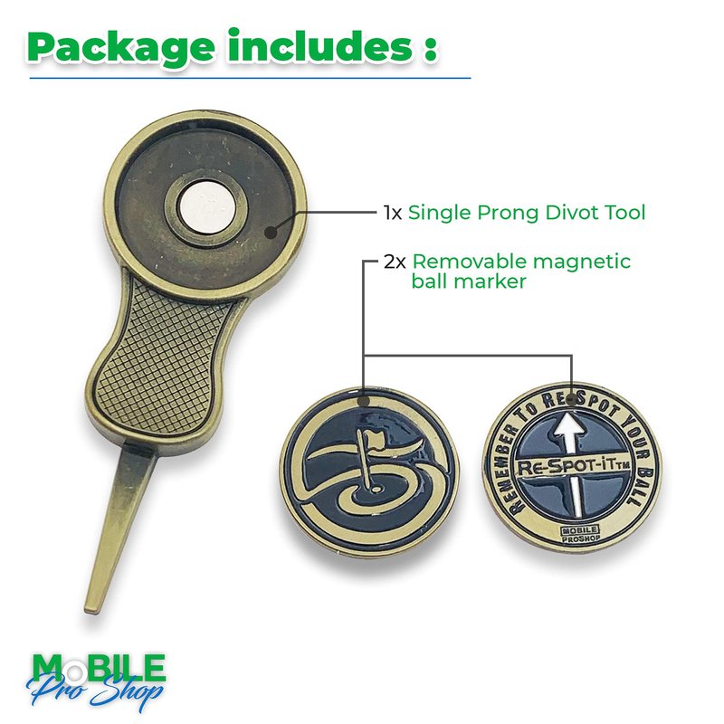 Mobile Pro Shop Golf Single Prong Divot Tool W/Removable Marker Antique Brass