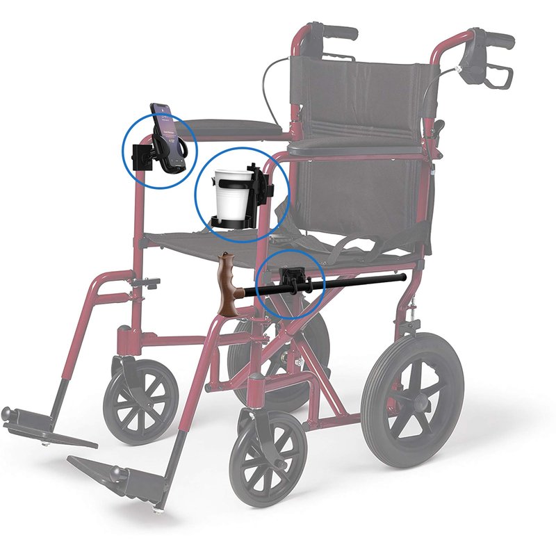 - Compatible with Most Mobility Devices - You can reuse and mount our mobility accessories wherever you need them. Our walker cup holder, phone holder and hooks can be attached to any mobility device that has up to 2-inch diameter tubing.