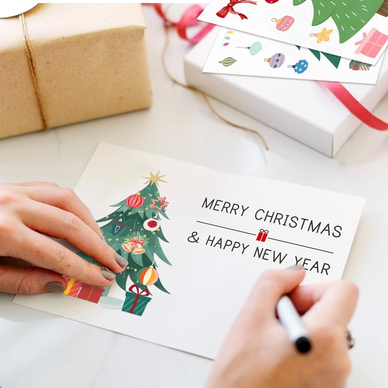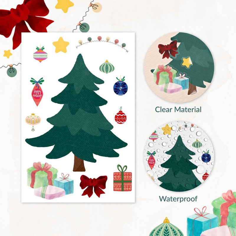 Mobiusea Creation Christmas Party Favors | Make a Tree Stickers | 40 pcs Christmas Crafts for kids bulk | 4 x 6 inch | Clear Christmas Tree and Ornament Decorating Craft Sticker Set