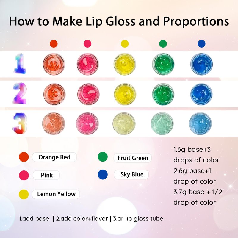 - 【Have Fun with lip gloss Making】Learn about lip gloss DIY Creation and how to make it with the MOCIKE DIY kit. With different oils, colors, and mica, you can create your own unique and professional unique DIY makeup, it's a very fun process for DIY lip gloss.