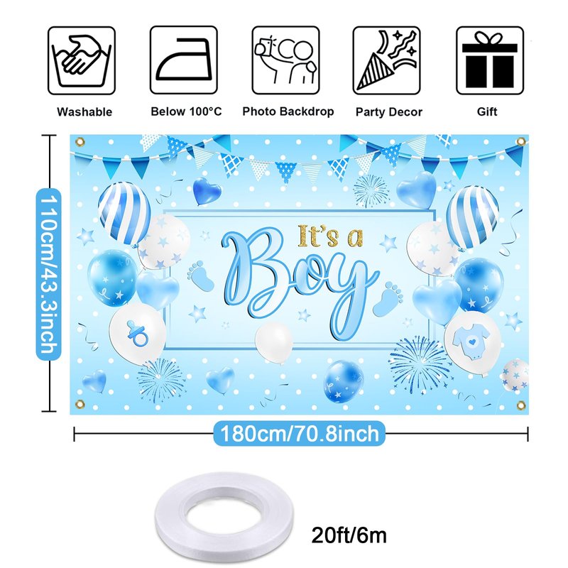 - Materia: Polyester, baby shower backdrop for boy is made of high quality material that stands up to repeated use, lightweight and portable, non-toxic, odourless and soft