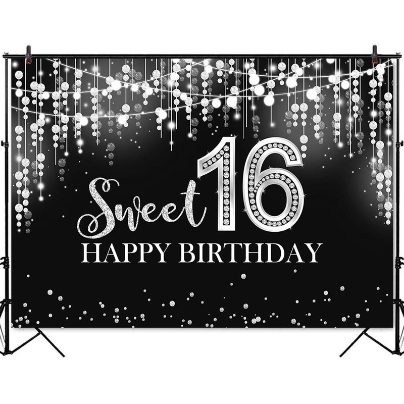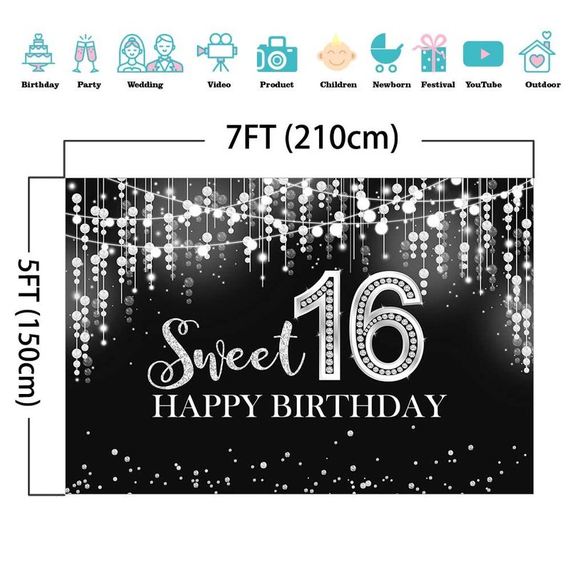- ❤【WHAT YOU GET】1 pc sweet 16th birthday backdrop without the pocket. Please note that the stands and clips are not included.