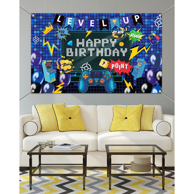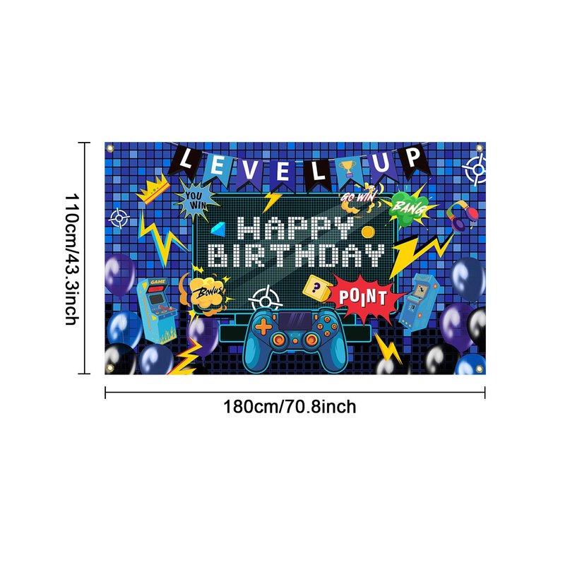 - Apply to: These Level up birthday Party Decorations for home are great additions to birthday party, baby shower party, room decor, cake table banner, tapestry, curtain, celebration events, reception decor, photo booth backdrop and kids cake smash