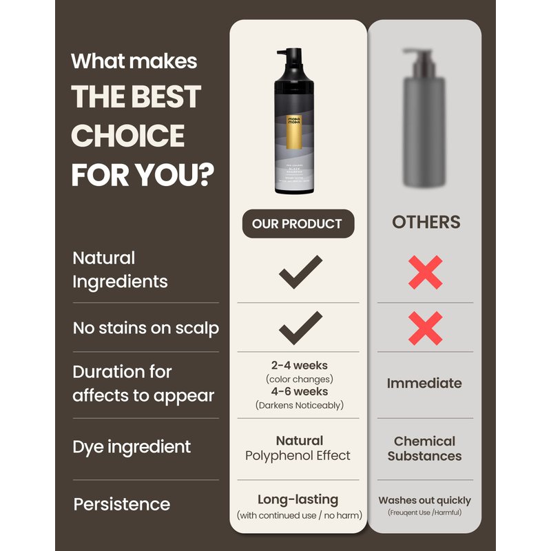 Transform your hair with Pro-Change Black Shampoo, the ultimate solution to eliminate gray hair and enhance your natural beauty. Infused with the power of nature's browning ingredient, Polyphenol, derived from fruits and vegetables, this shampoo provides a stunning darkening effect that leaves your hair stronger and more vibrant.