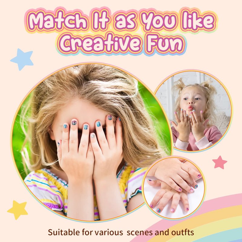 - 【Press on Nails for Kids】 Modelones girls fake nails set contains 144 pcs children press on nails of assorted sizes and patterns, ideal for the girl's nail art decoration. Easy for kids to DIY various nail art styles every day to meet the different dresses' needs.