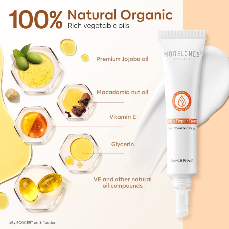 - 【Natural Hydrating, Deep Nourishment】Modelones cuticle repair cream made with a synergistic blend of natural vegetable oils and vitamins, by modern methods of creating a practical, fast-acting cuticle cream. The texture is smooth, non-greasy and light that easy to absorb with no residue, providing SPA-level care. Use every day to moisturize, soften and heal dry, damaged, peeling cuticles.