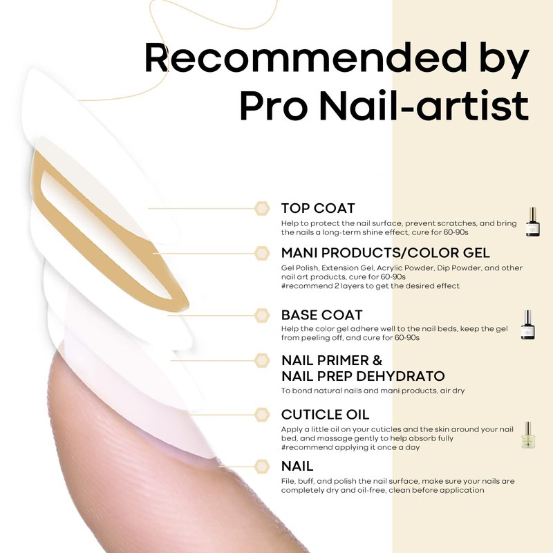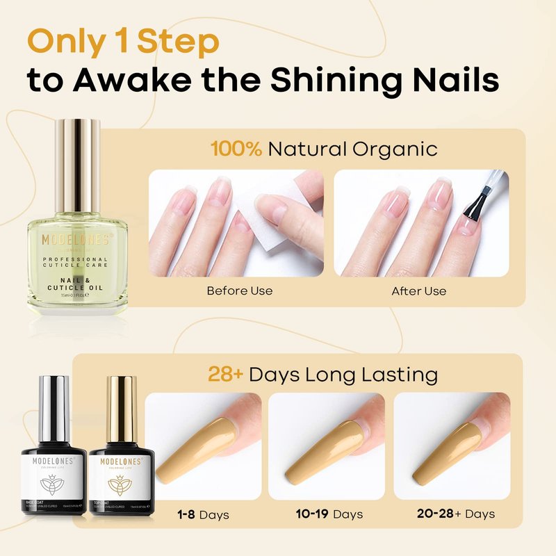 - 💖【STRONG EFFECT】: The CUTICLE OIL can nourish dry, cracked, and fragile cuticles. The BASE COAT helps to bond the natural nails and gel polish, and the TOP COAT brings a diamond shine to nails. They will make manicure products long-lasting for 28+ days when used together.