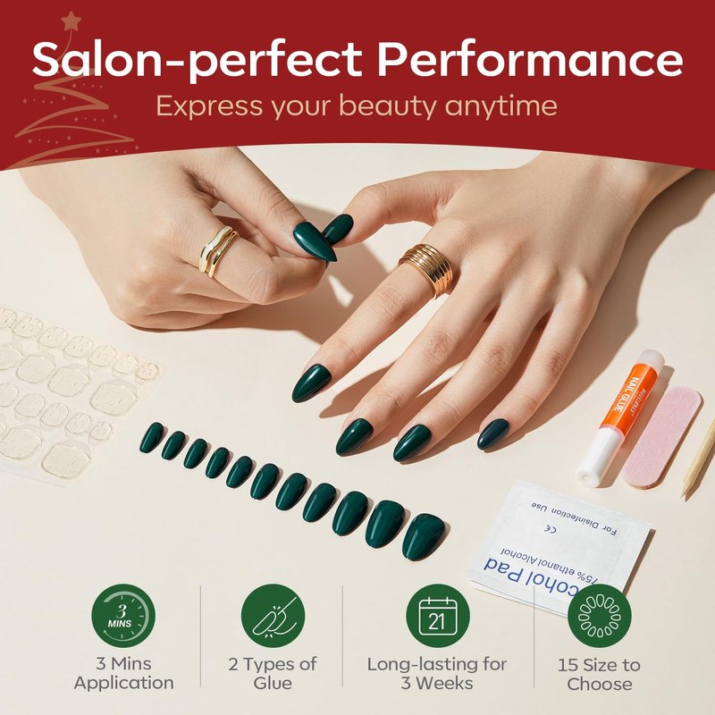 - Green Press On nails: Modelones press on nails short give you infinite opportunity to play around with different trendy nail styles for every mood, every outfit, and everyday.