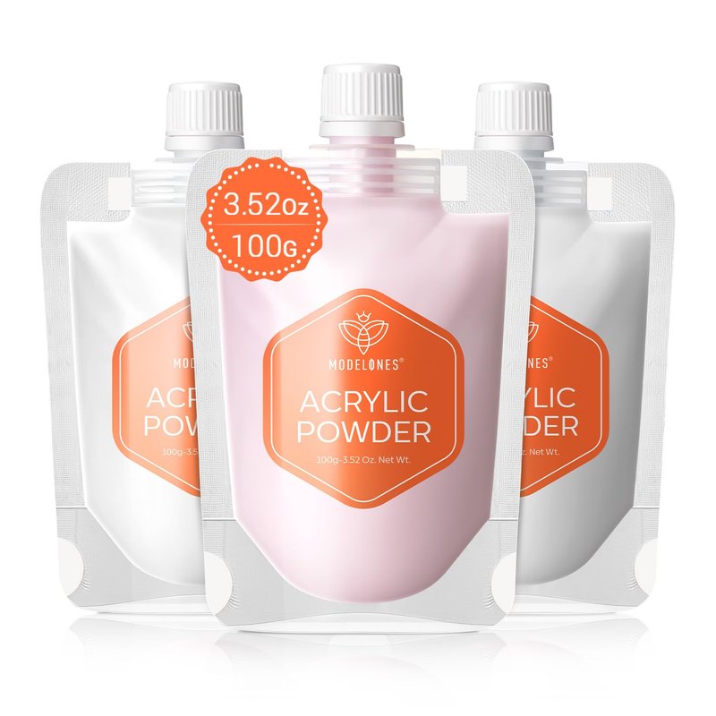 modelones 3.53oz Acrylic Powder Set- 3 Colors Clear/White/Pink, Premium Acrylic Nail Powder for for 3D Acrylic Nail Art Nail Carving French Nail Extension
