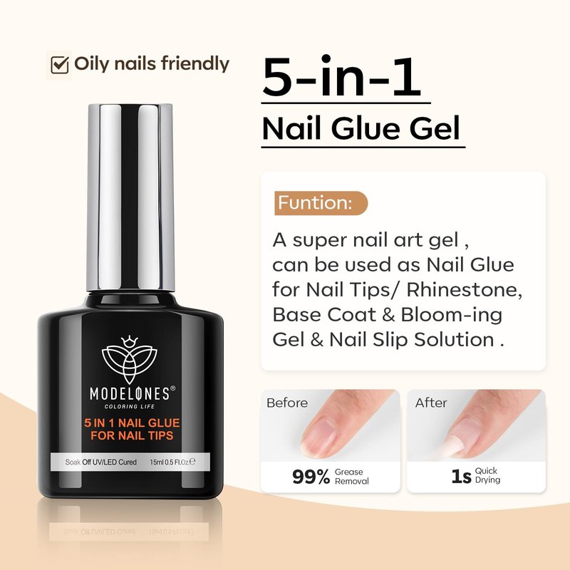5 in 1 Nail Glue with Gel Top and Base Coat Gel Nail Kit