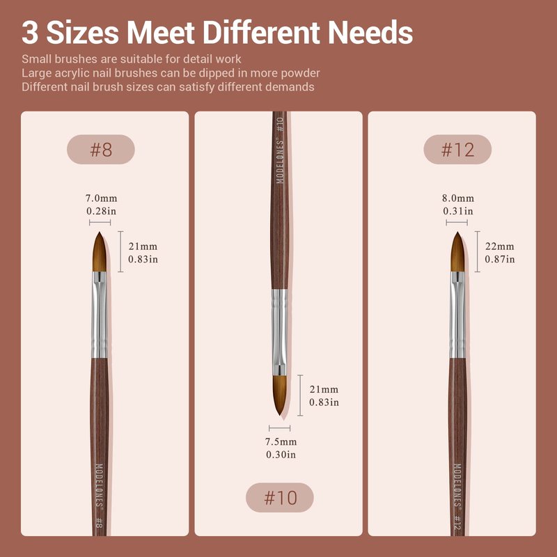- ❤BRUSH DESIGN: Round-shaped brush head for acrylic powder, nail extension, and nail carved. etc. Sturdy alloy tube holds the hair firmly, does not split or deform, durable for a long time use.