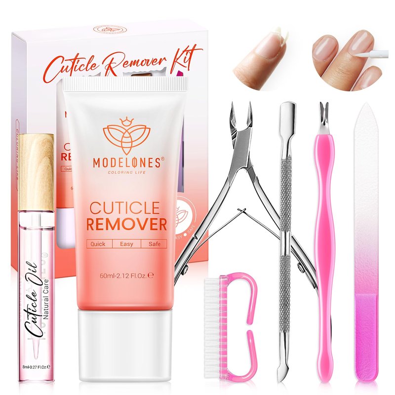 - 🍃COMPREHENSIVE CUTICLE REMOVER KIT: Included 7 pcs cuticle kit, 60g Cuticle Remover Cream, 0.27oz Essential Nail Cuticle Oil, Cuticle Trimmer, Cuticle Pusher, a complete set of nail care manicure tools. Let Modelones All-in-one cuticle remover set brings you a more pleasurable manicure experience.