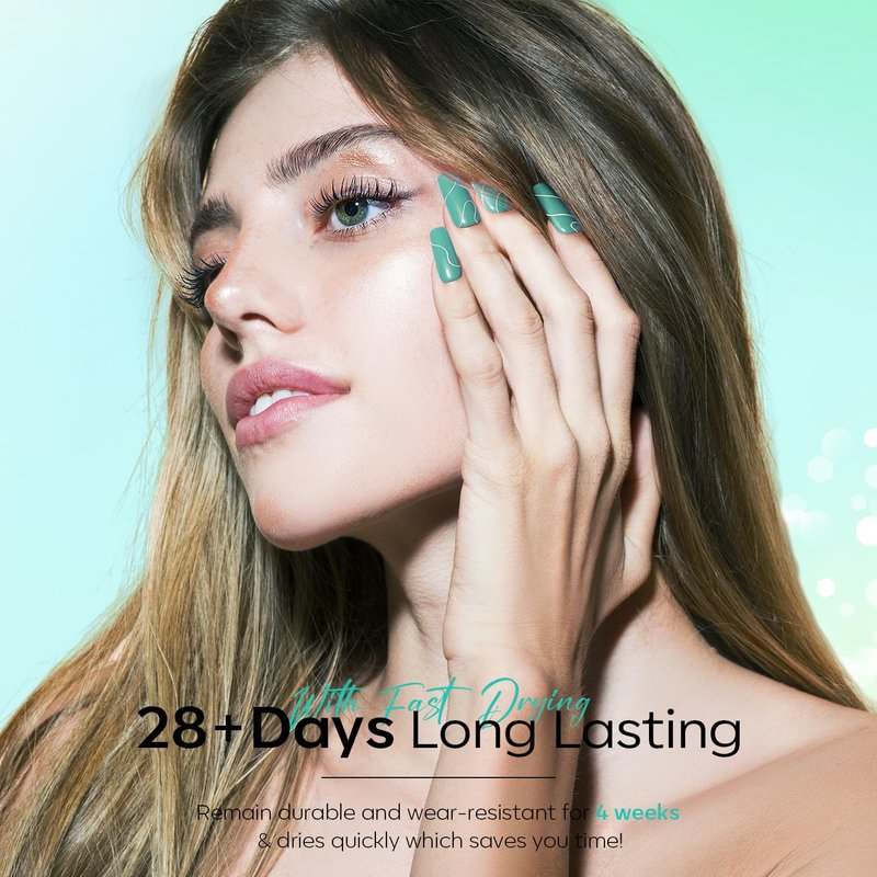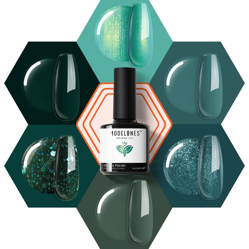 - 【Healthy & 28 Days No Peel-off】Modelones gel nail polish set is made of natural resin, it is non-toxic and has a low odor. No harsh ingredients or adhesives lead to damaged nails. High durability and Intense pigmentation green blue gel polish kit can stay last longer and brings you a brilliant shiny finish. Spend 3 minutes and long-lasting for 28+ days.