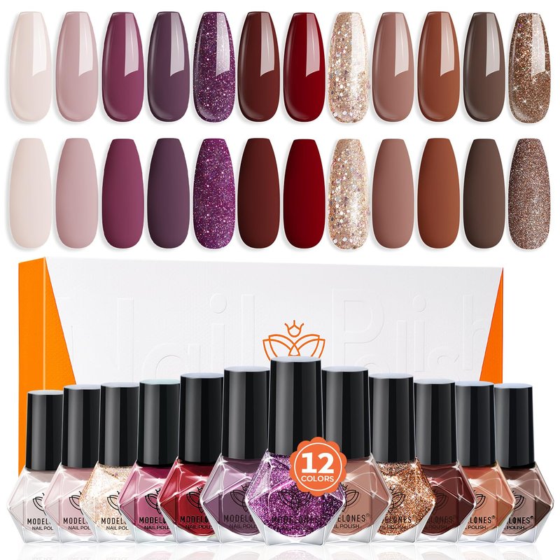 Modelones new 12-color nail polish set, specially curated for the fall and winter seasons. Featuring a luxurious palette of rich reds, deep browns, shimmering golds, and regal purples, this set offers the perfect shades to complement your seasonal style. With a quick-drying, long-lasting formula and effortless application, it’s ideal for both everyday wear and special occasions. Whether for personal use or as a thoughtful gift, this set brings warmth and elegance to your nails all season long.
