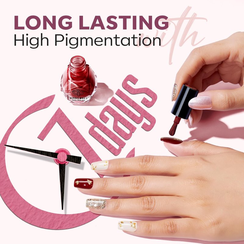 - Quick-Drying Formula: Save time without compromising on quality. Our quick-dry formula ensures that each layer sets in just 2 minutes, allowing you to complete a full manicure in 10 minutes. The nail polish dries evenly, providing a long-lasting, chip-resistant finish.