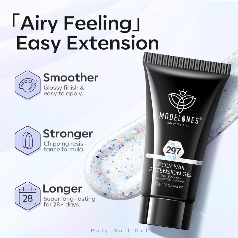 - ❤ 【HIGH QUALITY AND LONG-LASTING】: Modelones nail extension gel adopting nano-grade plant resin material with high hardness, low odor ,toxin-free and breathable properties, making nails remain for more than 28 days without breaking, yellowing or shattering