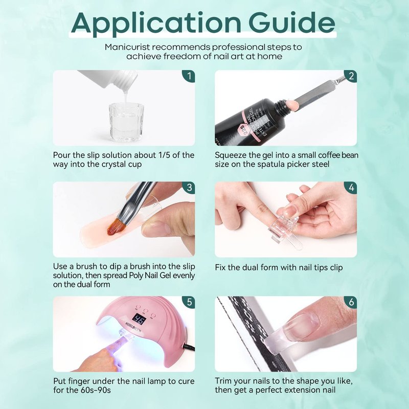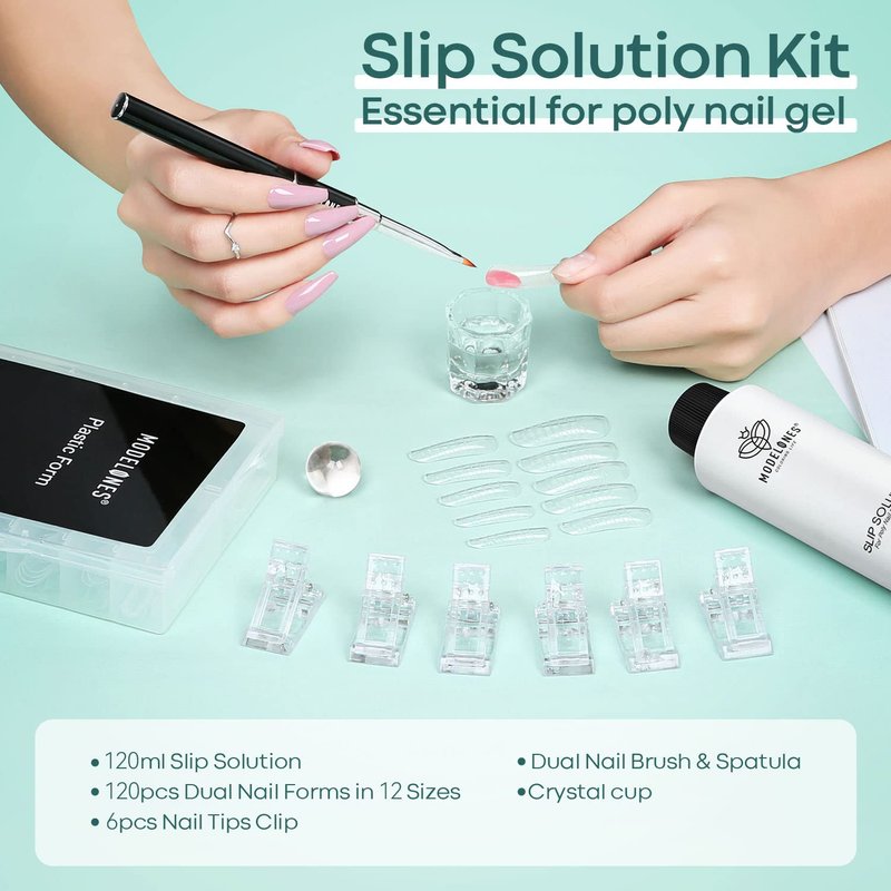 - 💚【Modelones Slip Solution Complete Kit】:Modelones slip solution kit for poly nail gel included a 4oz slip solution anti-stick gel nail liquid, 120pcs dual nail forms in 12 sizes, 6pcs nail tips clips, a dual-ended nail brush & picker, and a crystal cup. One kit for all your needs for poly nail extension tools.