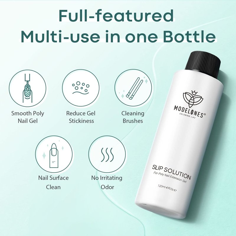 - 💚【Full-featured Multi-use in One Bottle】: Modelones 4oz slip solution is suitable for all brands. In addition to smooth spreading poly nail gel and reducing gel stickiness, the slip solution can also be used to clean nail brushes, Light oil formulation smoothes out the dryness and adds resilience to brushes. Nail brushes that have used gel nail polish, poly nail gel, solid cream gel polish, and functional gel can be cleaned.