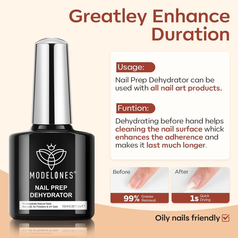 modelones Upgrade Nail Dehydrator with Gel Top and Base Coat Set No Wipe Diamond Shiny Top Coat Nail Art Prep Kit for Gel Nail Polish