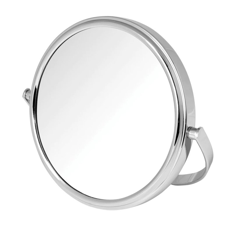 - TABLETOP VANITY MIRROR - This sleek, round mirror looks stunning on any vanity or bathroom counter. The modern, chrome finish base matches a variety of home styles and aesthetics. This tabletop mirror is great for getting ready, especially for styling hair and applying makeup. The magnification offers a close-up view, allowing you to see every detail and perfect your look!