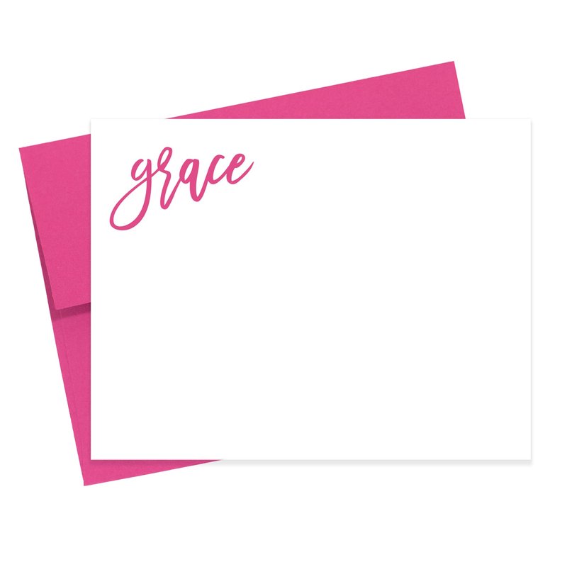 These personalized stationery note cards are perfect for writing a quick hello or thank you note and can also be sent as a gift to friends and family. Each set is made to order and is customized with your selection of ink and envelope colors.