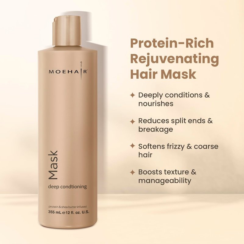 - ✔️ HOW TO USE THE HAIR MASK — Apply the required Moehair Hair Mask after shampooing and to wet hair. Leave it on for 5 to 10 minutes, depending on hair type. Rinse off thoroughly with cold or lukewarm water. Add this hydrating hair mask to your weekly haircare routine and use it once a week for smooth, silky, and nourished hair