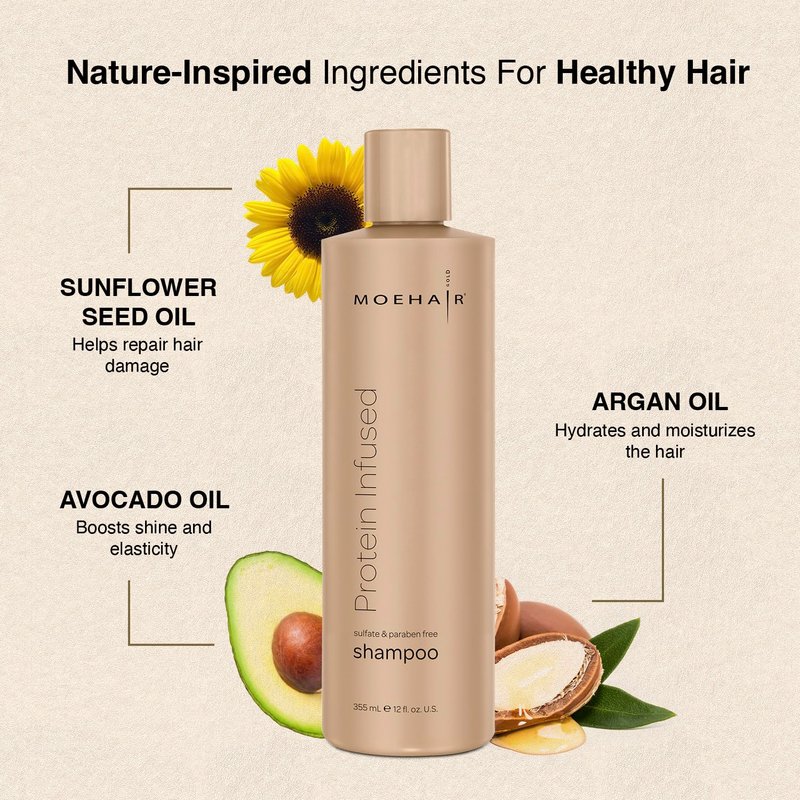 MOEHAIR Protein Infused Shampoo | Anti-Frizz, Moisturizing & Strengthening Shampoo for All Hair Types | With Proteins, Natural Oils & Vitamin E & B5 | Sulfate & Paraben-Free Hair Shampoo 12 Fl Oz