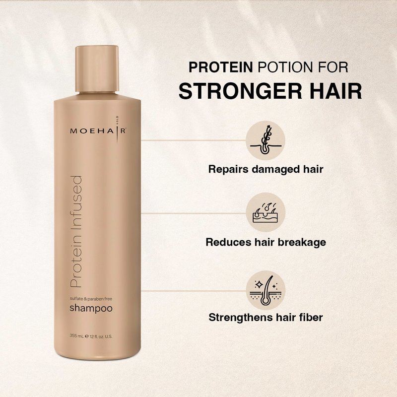 - ✔️HOW TO USE — The protein shampoo is easy, like any regular shampoo. Pour a generous amount of the Moehair Protein Infused Shampoo on your palm. Apply the hair shampoo on wet hair from root to tip. Deeply cleanse your hair and wash it off with cold or lukewarm water. Get protein-infused shampoo and conditioner set for a thorough cleansing hair ritual. It deeply cleanses the product build-up and acts as a scalp treatment