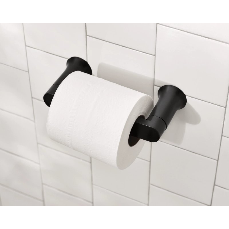 Moen Genta LX Matte Black Modern Wall Mount Pivoting Toilet Paper Holder, Modern Toilet Roll Holder for Bathroom, BH3808BL