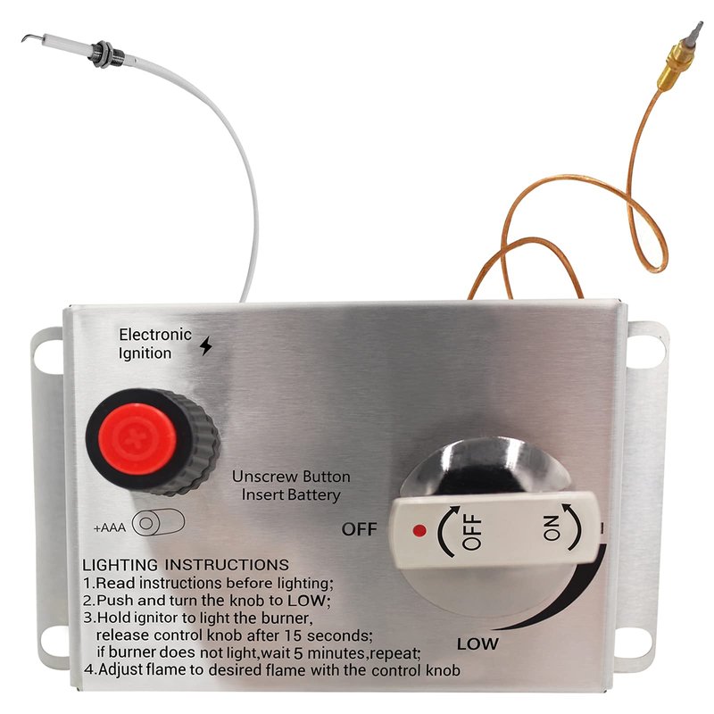 - ➣ Product packaging includes: 5.98" x 3.58" 304 stainless steel fire pit control panel, Electronic Push Button Plus Igniter & Wire, 600mm thermocouple, metal ON-OFF knob, 1/2 PSI (65 mbar )control gas valve