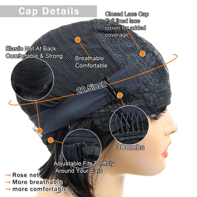 - Bob Wig Human Hair Cap Size: Average Size(22.5" circumstance),3 Combs Inside with Adjustable Straps,Fits Your Head Perfectly.Soft and Breathable Cap Material,More Comfortable For All-day Wear