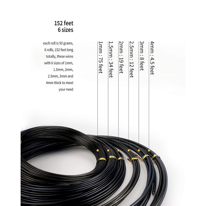 MoHern Bonsai Wire, 6 Sizes of 1mm, 1.5mm, 2mm, 2.5mm, 3mm, 4mm Black Aluminum Wire, Total 152 Feet Bonsai Tool Kit, 300 Grams Bonsai Tree Wire for Bonzai Trees Indoor