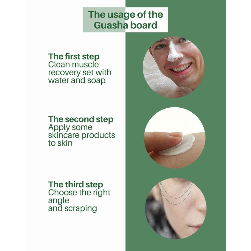 - ADVICE: apply some skincare products to skin before scraping, clean this muscle recovery set with warm water and soap