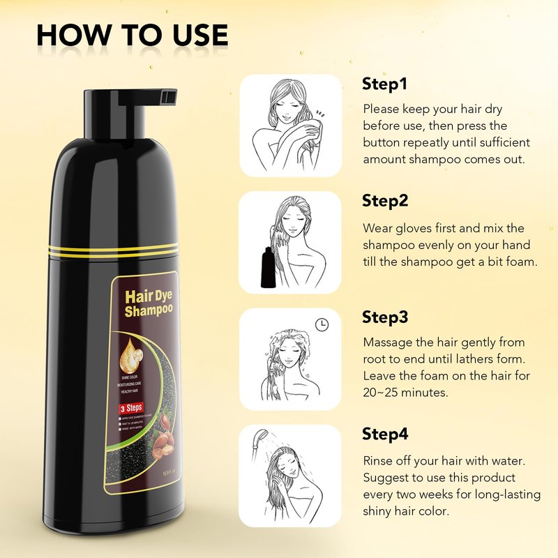 - Long-Lasting: Our hair color shampoo delivers enduring results, maintaining color for 4-5 weeks with each application. To prolong the shine and blackness of your hair, we recommend using this product every 15 days.