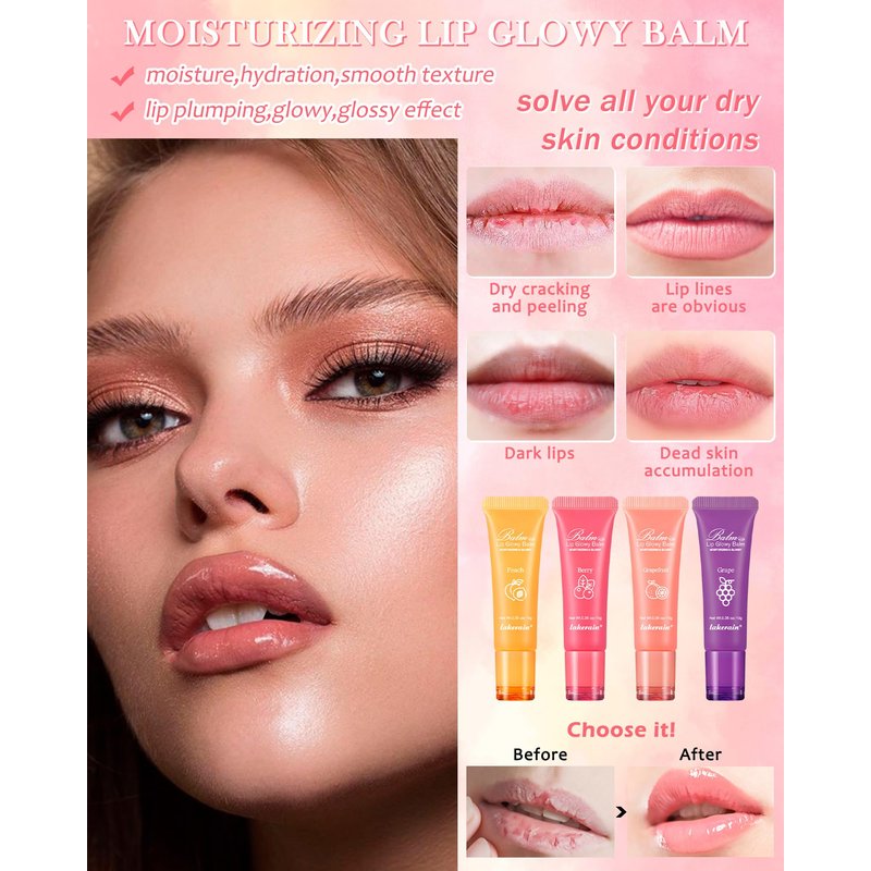 Moisturizer Lip Glowy Balm, Hydrating & Nourishing Repair Sleeping Lip Mask, Shine Glossy Finish Lip Oil, Day and Night Smooth Cracked Chapped Dry Lips, Lip Care Therapy Treatment for Women-4#Grape