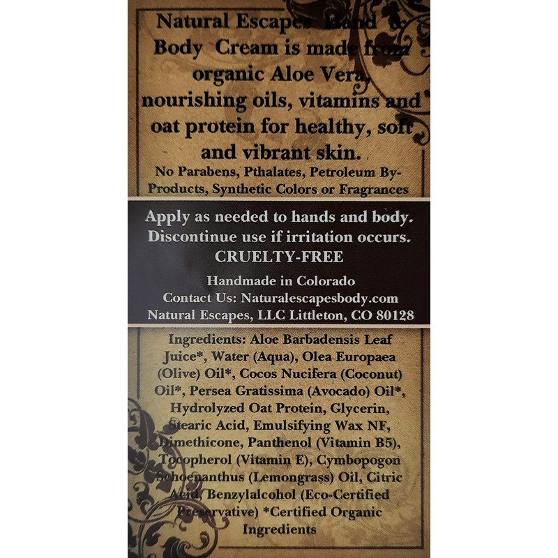 Natural Escapes Aloe & Olive Hand & Body Lotion is an extra rich natural lemongrass lotion great for everyday use on hands and body.