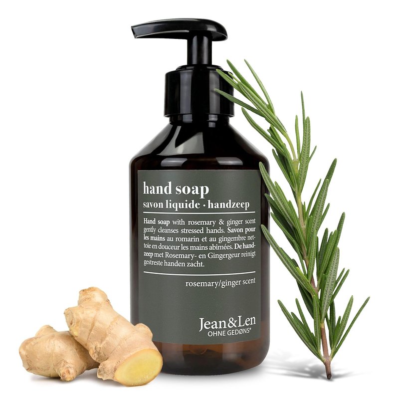 Moisturizing Liquid Hand Soap by Jean&Len with Rosemary Ginger scent, for soft and clean hands, silicone and paraben free with natural ingredients, vegan, 8.4 Fl. Oz.