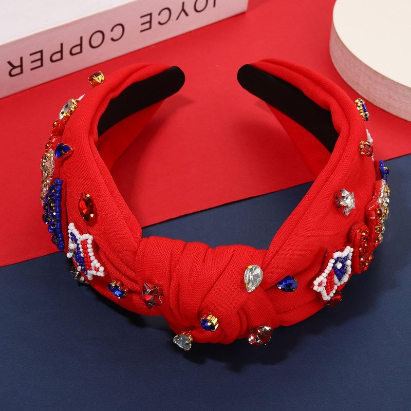 - ★4th of July Accessories: Pay tribute to our beloved American flag with these Independence Day crystal top knot headband that resemble our beautiful "Old Glory"! Boasting the red blue white colors, this jeweled headband is sure to grab compliments at all summer patriotic gatherings. These are the perfect Fourth of July accessory to your red, white, & blue outfit and a fun way to show off your love and pride for our country at picnics, parades and events!