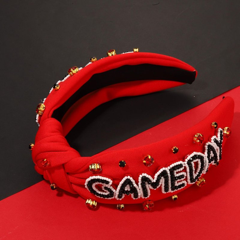 - ★ Game Day Headbands: Cheer on your favorite football team and show off your team's colors in style with these game day accessories for women. Our jeweled headband featuring classic top-knot design in your favorite team colors, accent with enamel football, bead ‘GAME DAY’ and sparkle rhinestone pearl. The perfect blue/red spirit day accessories for game day, team events, football games, or as a stylish way to show off your love for the game, also is the perfect addition to your tailgate attire!