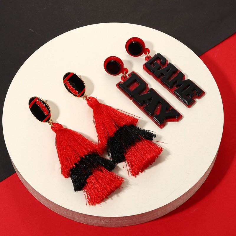 √Package Includes: 1 x Game Day Headband, 1 Pair of Game Day Earrings, 1 Pair of Sport Team Tassel Earrings.